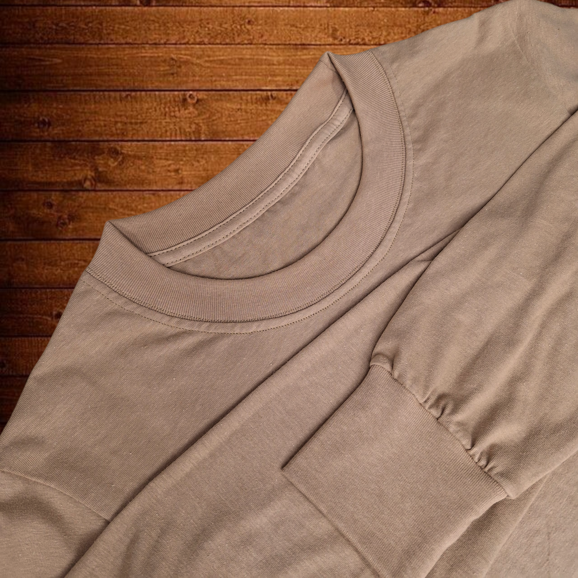 Esta playera caqui de manga larga con corte regular está elaborada en algodón 100% de 200 gramos, ofreciendo una combinación ideal de resistencia y comodidad. Su cuello tipo cardigan de 3 cm y puños en cardigan aseguran un ajuste preciso y un acabado duradero, perfecto para quienes buscan una prenda básica con calidad profesional.